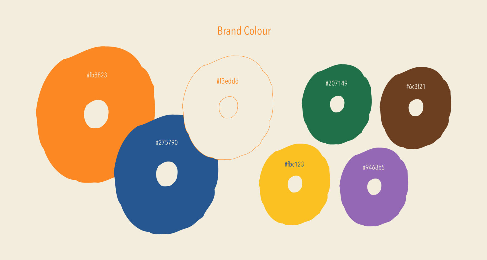 The colour variations were inspired by different bagel flavours — each version reflecting a distinct taste or mood. This added flexibility and personality to the brand system, allowing the mascot to adapt across contexts like menus or packaging.