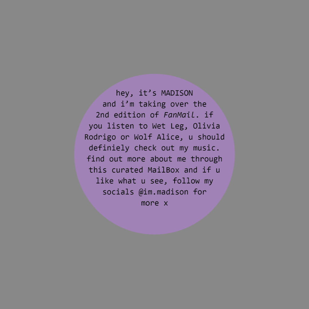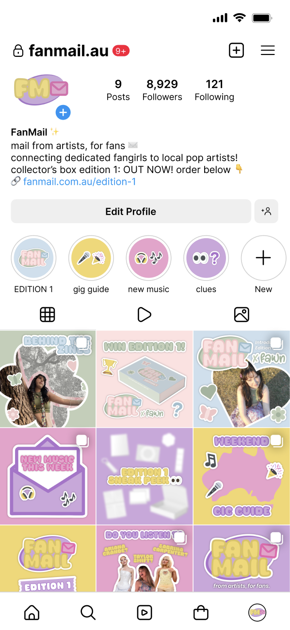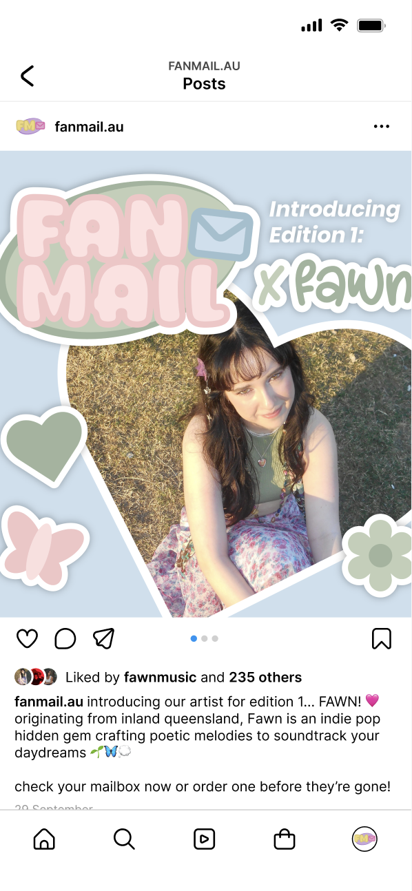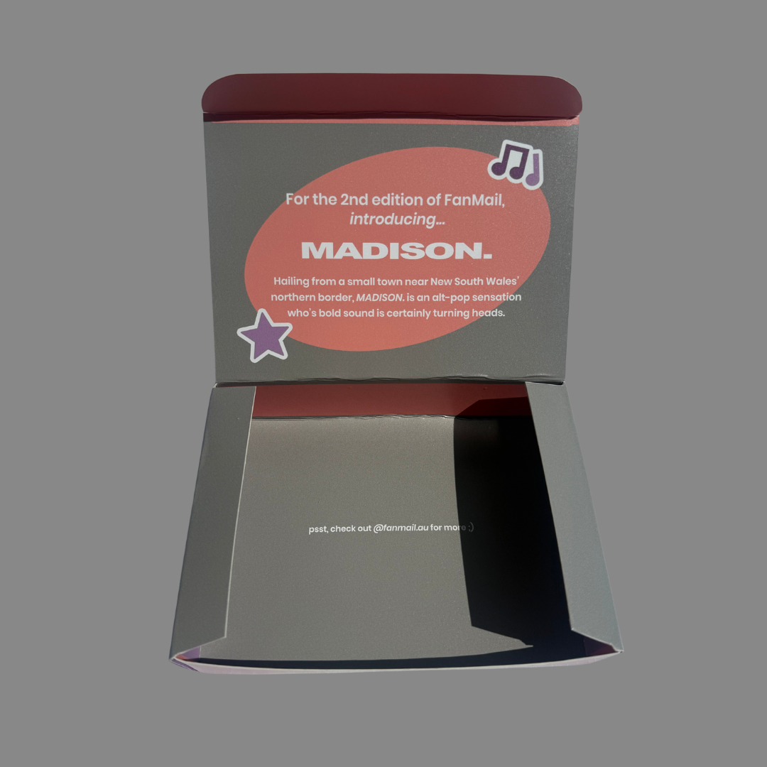 FanMail aims to connect dedicated fangirls to up-and-coming local pop artists through collectable 'MailBoxes' and social media content - increasing accessibility to the Australian music industry. Each edition is curated by a surprise pop artist and full of themed goodies to connect fans to them and their music. You don't know who it'll be or what's inside until it's delivered!