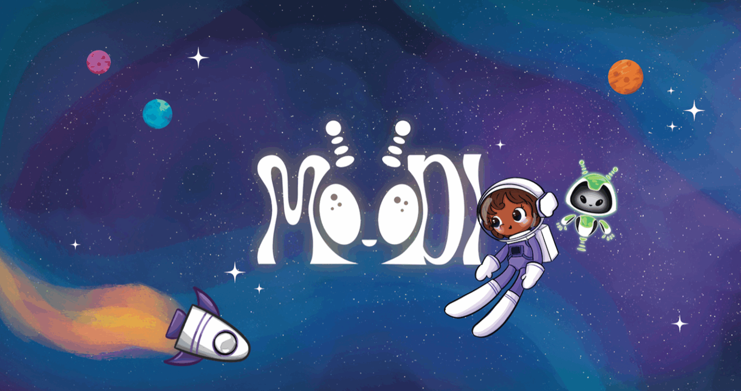 Moodi is a visual communication project combining storytelling, brand identity, and gentle interactivity. Centred on emotional learning, the story follows Moona and Gigabyte through a dreamy space adventure that encourages children to understand their feelings and embrace creativity with curiosity and care.