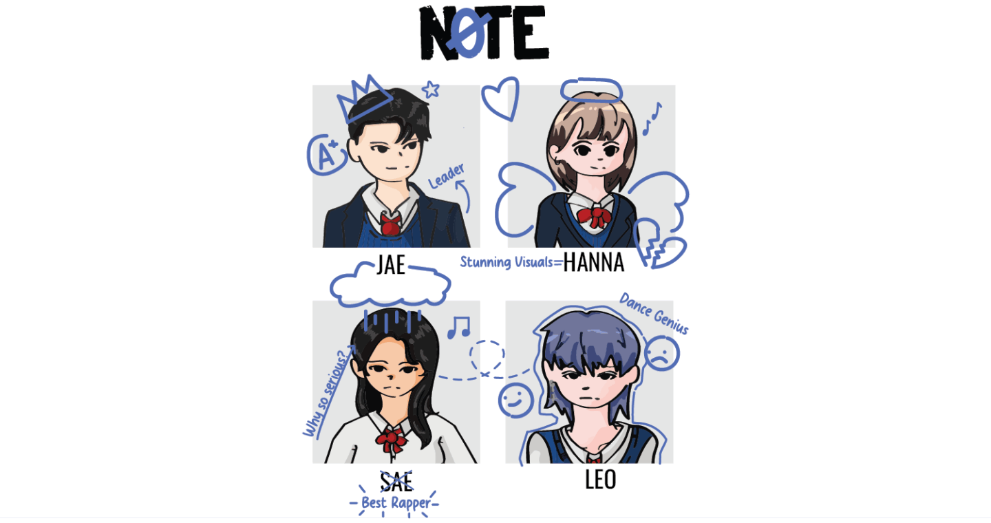 The virtual K-pop group N.O.T.E (Never One To End) consists of four members - Jae, Leo, Hanna, and Sae. Their concept centers on teen struggles and mental health, encouraging young people to embrace uncertainty about the future. With the motto “It’s okay to be unsure,” they inspire hope, inclusivity, and self-expression.