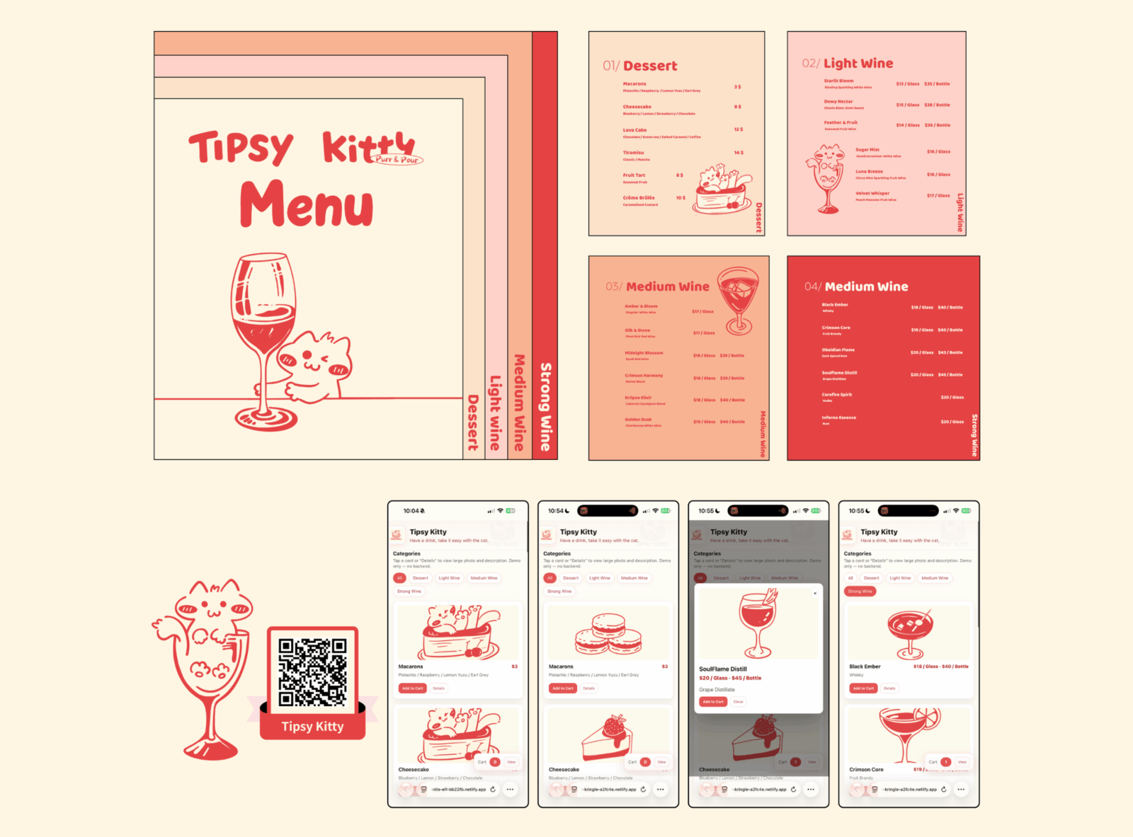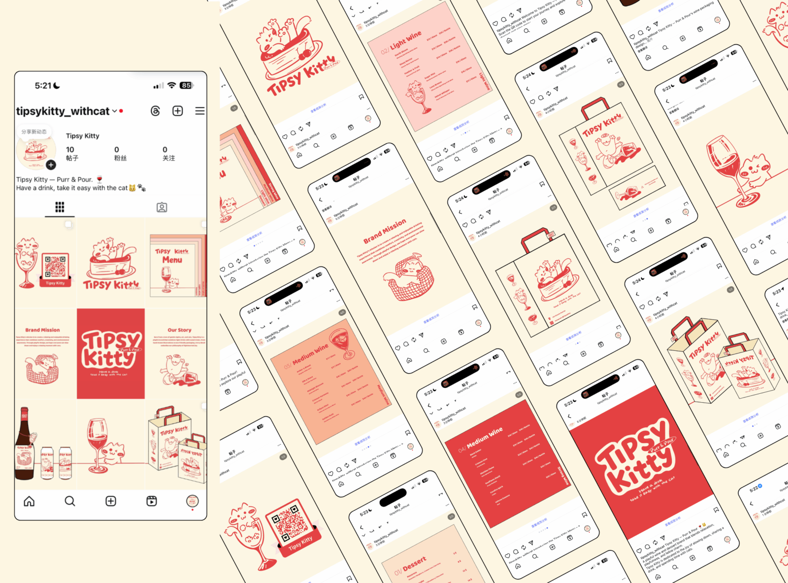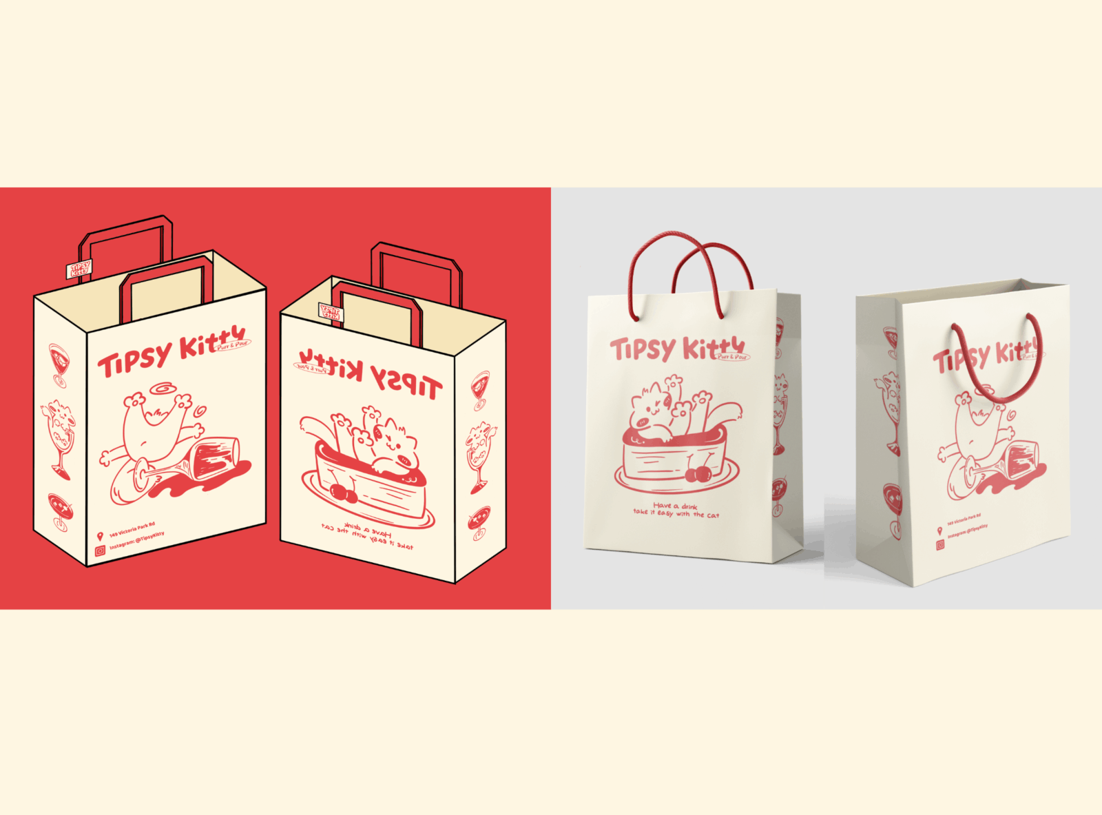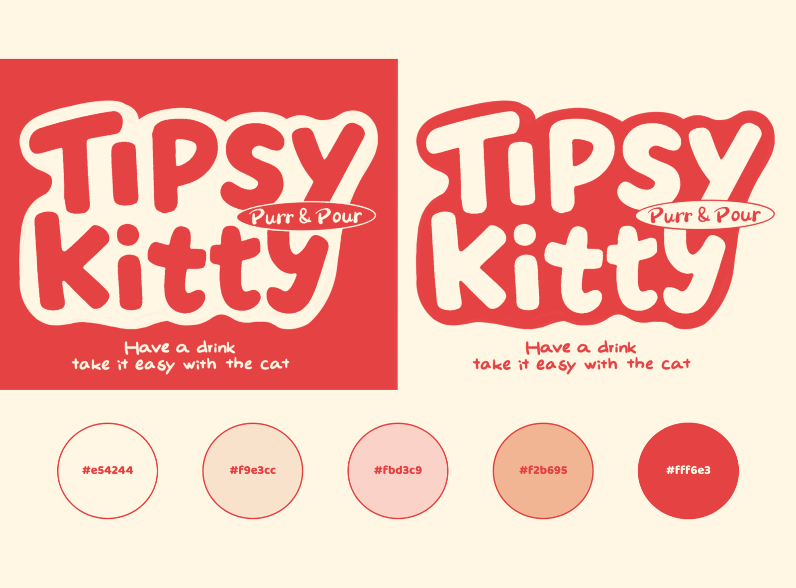 Tipsy Kitty is a brand that blends desserts and alcoholic beverages, using the cat as its main visual identity, The brand promotes a lifestyle of relaxation, companionship, and a touch of intoxication. The brand encourages people to slow down, enjoy a drink, a sweet treat, and a relaxing moment with the cat.